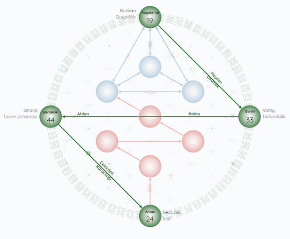 En yüksek frekans olan Fedakârlık Alçak Boyutuyla çok bağlantılıdır. Alçak frekanstaki bağımlılık ilişkilerinde eşler kendi kişiliklerinden fedakârlık yaparlar en yüksek frekansta da kendi bireyselliklerini kolektif bilince feda ederler. Burada mitlerdeki fedakarlığın anlamı ortaya çıkar ve dönüşüme yol açar.