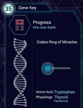35.Gen Anahtarı bir ada gibi tek başına duruyor – Mucizeler Kodon Halkası içinde tek bir anahtar. Bu yüzden aç; bizi bağlantı kurmaya itiyor, çünkü o yalnız. Ayrıca, doğrudan gölgeden Öze yani Siddhi’ye bir portalı olan tek gen anahtarıdır.