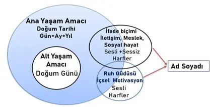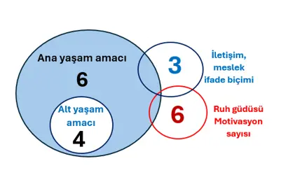 ANA YAŞAM AMACI: Doğum tarihindeki tüm rakamları tek tek toplayıp sadeleştiriyoruz; 4+5+2+0+1+3= 15= 1+5= 6
